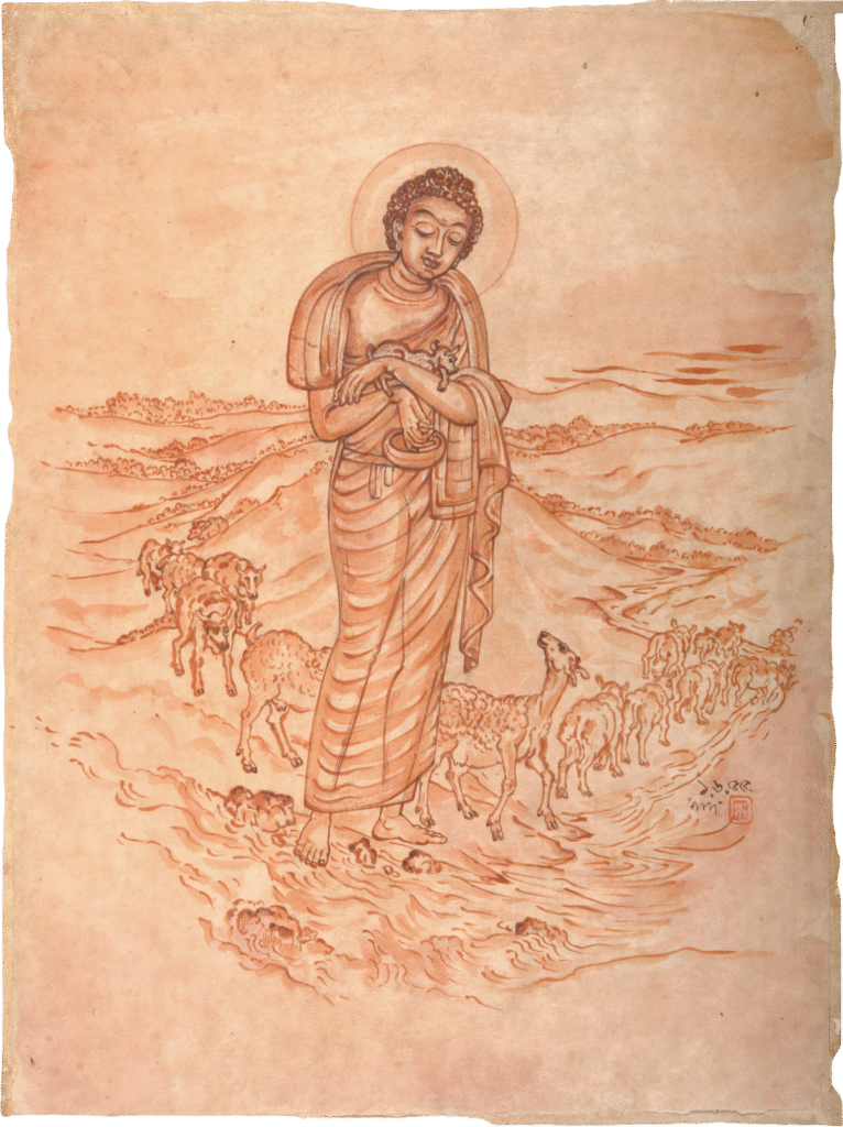 In this painting, the Buddha tenderly cradling a lamb amid a quiet flock becomes a moving visual embodiment of the Brahmaviharas, the four sublime states of mind taught in Buddhism. The scene most explicitly expresses karuna compassion one of these divine abodes. Yet, the tranquillity and balance of the composition also suggest the presence of […]
