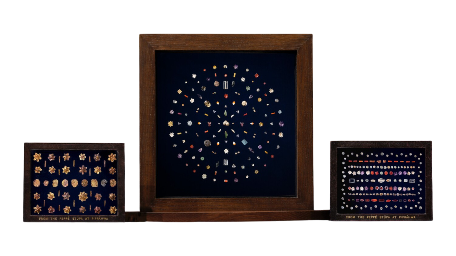 The Buddha relics from Piprawaha were unearthed by William Claxton Peppé in 1898. These gems, consisting of semiprecious stones, gold and silver leaf, pearls, and beads shaped into emblems such as tri-ratna, bird, leaf and lotus motifs etc. These were carefully mounted between glasses in three separate frames shortly after their excavation. The Peppé family retained a portion of the extracted funerary gems and kept them in custody until Chris Peppé decided to auction them at Sotheby’s Hong Kong in May 2025. The planned auction sparked outrage and protests from India and other Buddhist nations, leading to its postponement after the Indian government issued legal notices against both the Peppé family and the auction house, Sotheby’s. The Indian Ministry of Culture emphasised that these gems are sacred relics for millions of Indians and Buddhists around the world, asserting that according to Buddhist theology and archaeological standards, the gems are “not separable from the remains (bone fragments) they accompany.” Ultimately, on July 30, 2025, the Piprawaha gems were repatriated by the Ministry of Culture, Government of India, under the visionary leadership of Prime Minister of India, Shri Narendra Modi after 127 years. This unique repatriation process was expedited through a Public-Private Partnership with Godrej Industries Group, as the artefacts were held by a private collector, thereby fundamentally distinguishing it from previous repatriation efforts.