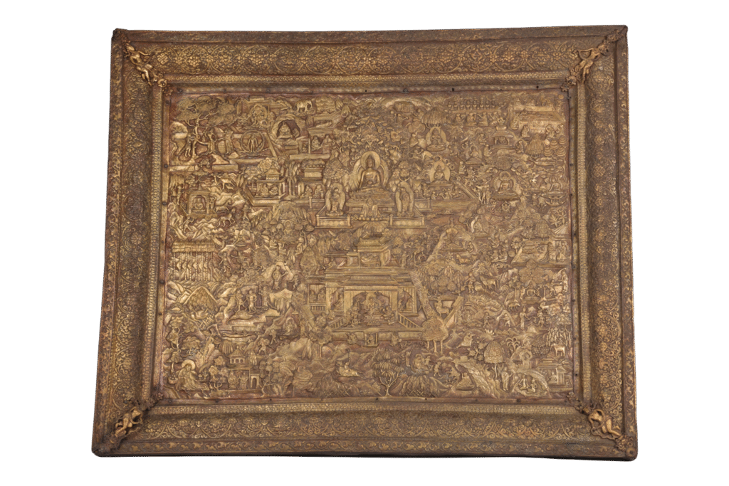 The 12 Deeds of the Buddha, illustrated in this 18th-century Tibetan brass and copper plaque (Accession No. 57.86/2), highlight key milestones in the life of Siddhartha Gautama, the historical Buddha. They narrate his spiritual journey from celestial realms to ultimate liberation and serve as foundational teachings within Buddhist traditions. The story begins with the Buddha’s […]