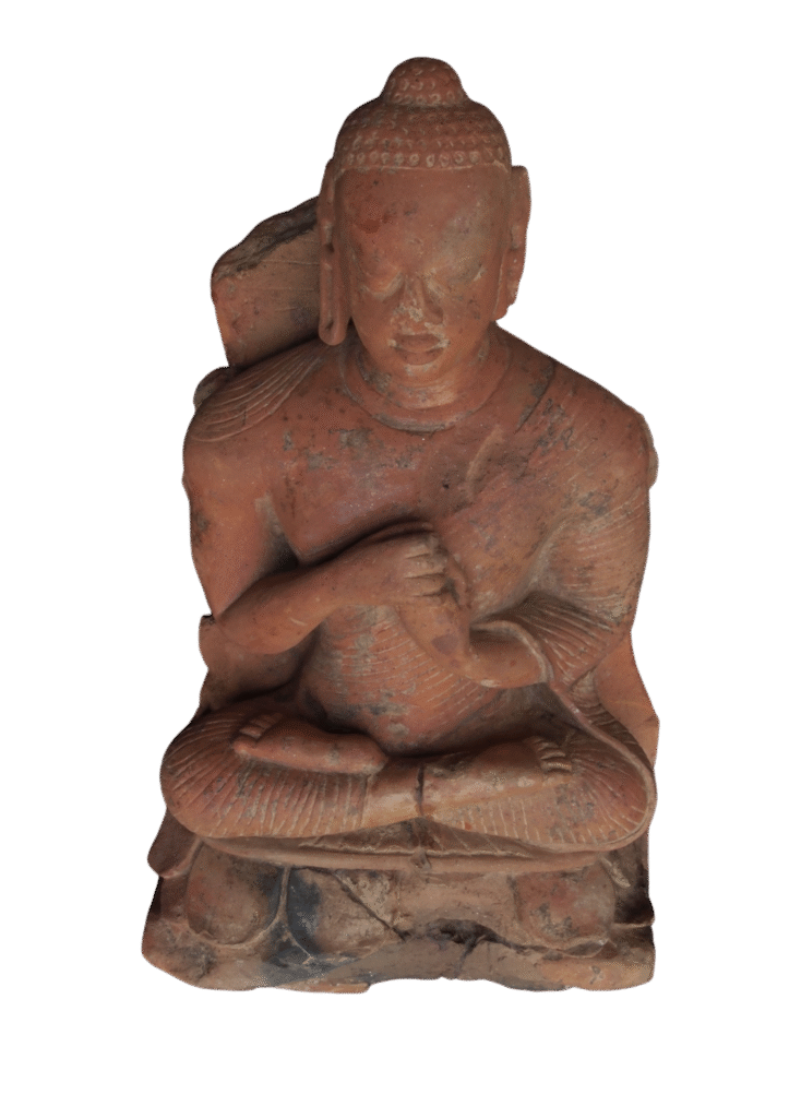 Terracotta representations of the Buddha hold an essential place in the study of early Buddhist art, even though they appear less frequently than images made in stone or stucco. In this sculpture, the Buddha is depicted in bodhyanga mudra (the teaching gesture). His calm and serene expression, reflecting the spiritual ideal associated with the Buddha, […]