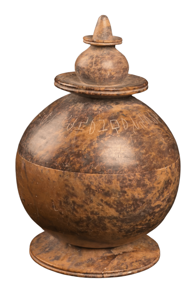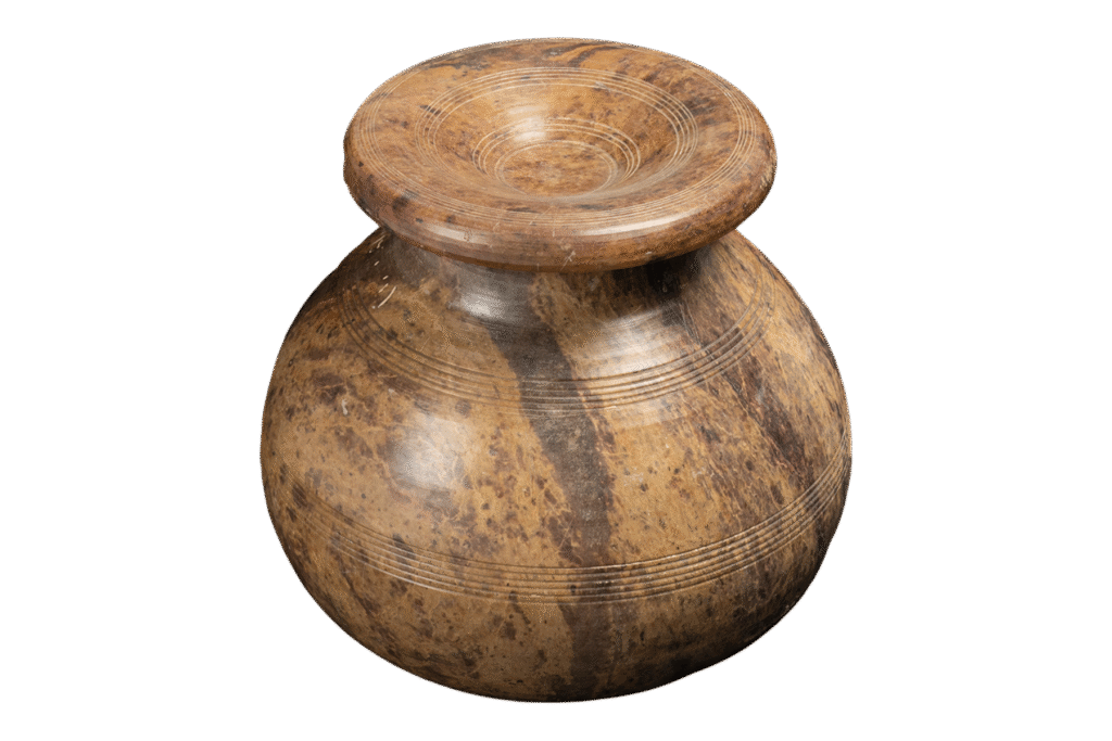 This circular relic casket, carved from fine steatite and featuring a low domed lid with a pointed knob and a shallow recessed base, exemplifies the refined craftsmanship of the Mauryan period. Its smooth finish and balanced proportions reflect the artistic precision and devotion. Once enshrining sacred gems and jewels dedicated to Śākyamuni Buddha, the casket […]